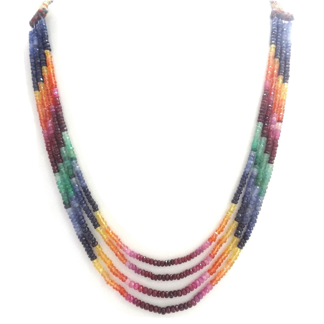 Multi Color Precious Stone Mala like Ruby, Yellow Sapphire, Blue Sapphire & Emerald with 4 Lines