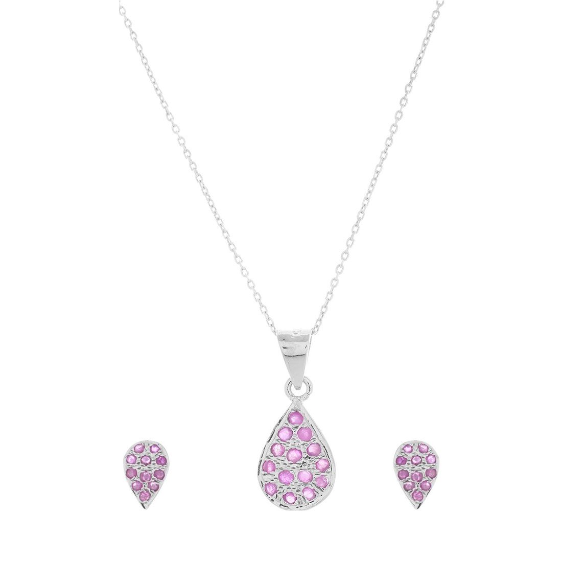 YUBI Silver & Purple Silver Pendant & Earrings Set for Women (YUBI 0050 PS)